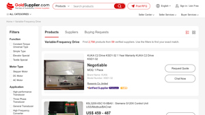 Analysis of Goldsupplier.com Variable-Frequency Drive category reveals 2,758 products from 59 verified suppliers (Gold/Platinum tier). Key industrial automation products include: (1) KUKA C2 Drive KSD1-32 servo drives for robotics applications with 1-year warranty and 1-piece MOQ; (2) Siemens G120X Control Unit (6SL3200-0SC10-0BA0) priced US$459-487 featuring USS/Modbus/BACnet communication protoc…